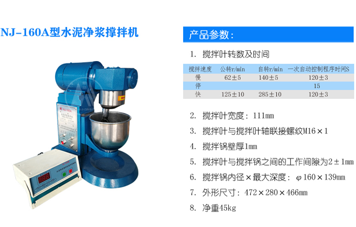 本機(jī)是貫徹GB1346-2001所規(guī)定的專用設(shè)備之一,是按JC/T729-2005主要技術(shù)參數(shù)制造的新型雙轉(zhuǎn)雙速凈漿攪拌機(jī)。是按標(biāo)準(zhǔn)規(guī)定的水泥和水混合后攪拌成均勻的試驗(yàn)用凈漿,供測(cè)定水泥標(biāo)準(zhǔn)稠度、凝結(jié)時(shí)間及制作安定性試塊之用,是水泥廠、建筑施工單位、有關(guān)專業(yè)院校及科研單位水泥試驗(yàn)室必備的,不可缺少的設(shè)備之一。